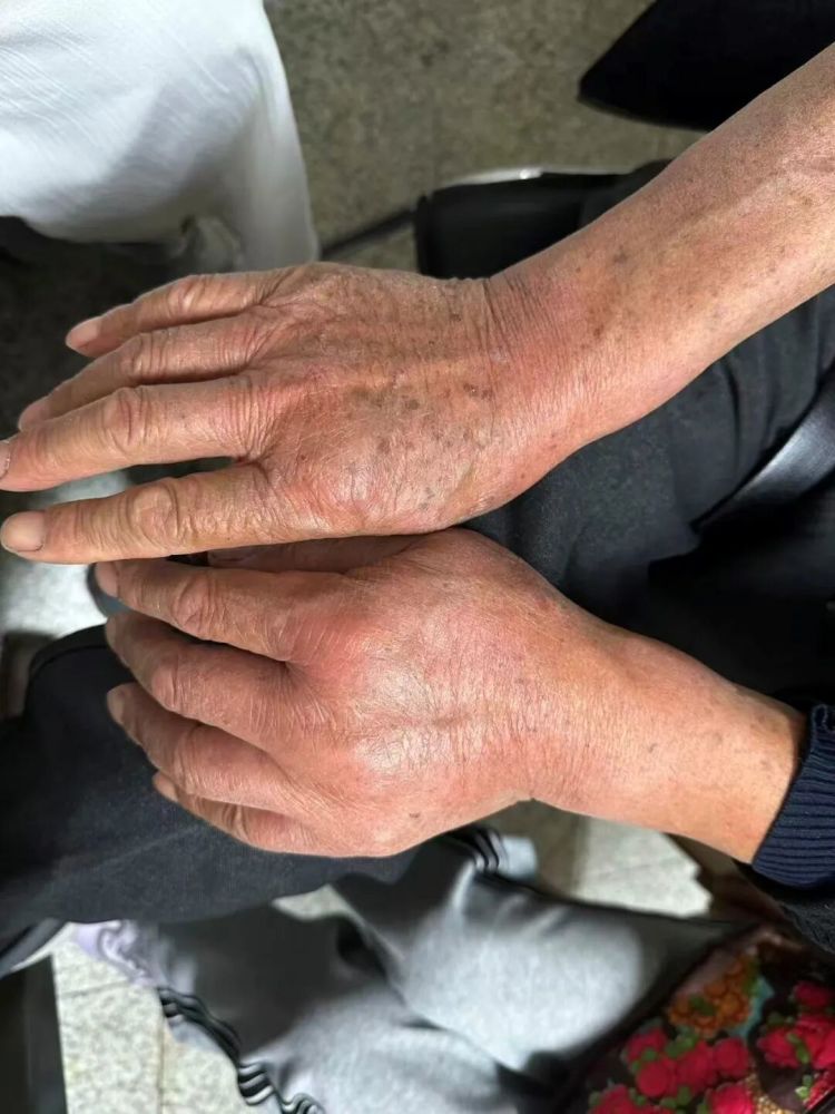 接诊的急诊科医生发现罗大伯全身四肢关节屈侧满是红斑和风团,还有胸闷、乏力等症状,立刻把他送入抢救室。