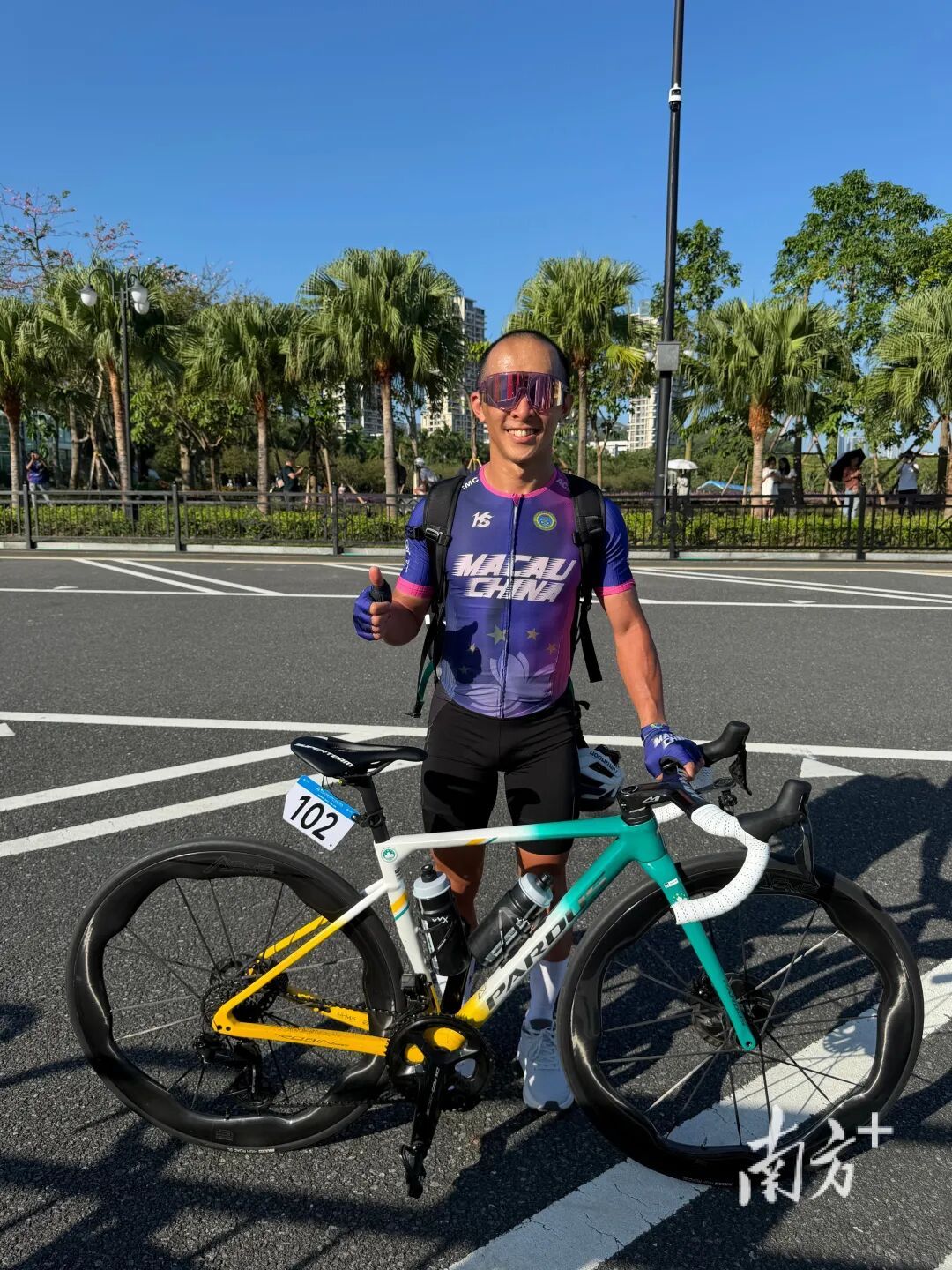 公路自行车男子个人赛是十五运会唯一跨越粤港澳三地的标志性跨境赛事。一路上,海阔天空的怡人景致,“无感通关”的顺畅无阻,都让崔庆华大感振奋。“特别是经过港珠澳大桥时,非常震撼!我们国家能建造出这么长的跨海大桥,我感觉特别骄傲!”他回忆道。