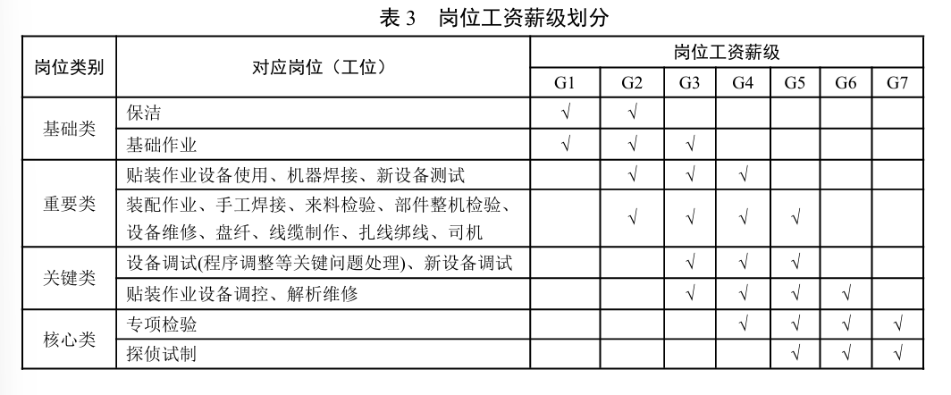 (四)核心类岗位:此类岗位的工作内容多为承担重大技术攻关、改造升级等具有前瞻性、创新性要求的工作任务。劳动者通常需要具有深厚的工作经验、较高的教育水平或较强的学习能力,精通多领域的专业理论知识,掌握高超、精湛的技能才能符合岗位要求。