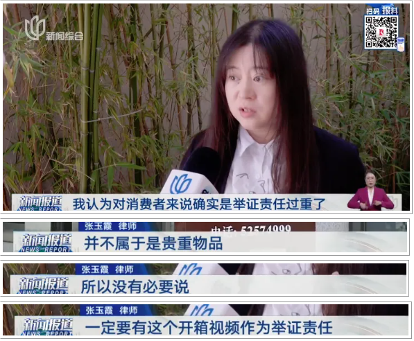 对此,律师张玉霞认为,要“开箱视频”才能维权,对消费者来说责任过重。如果商家提出“开箱视频”是售后维权的必要项,则涉嫌霸王条款。